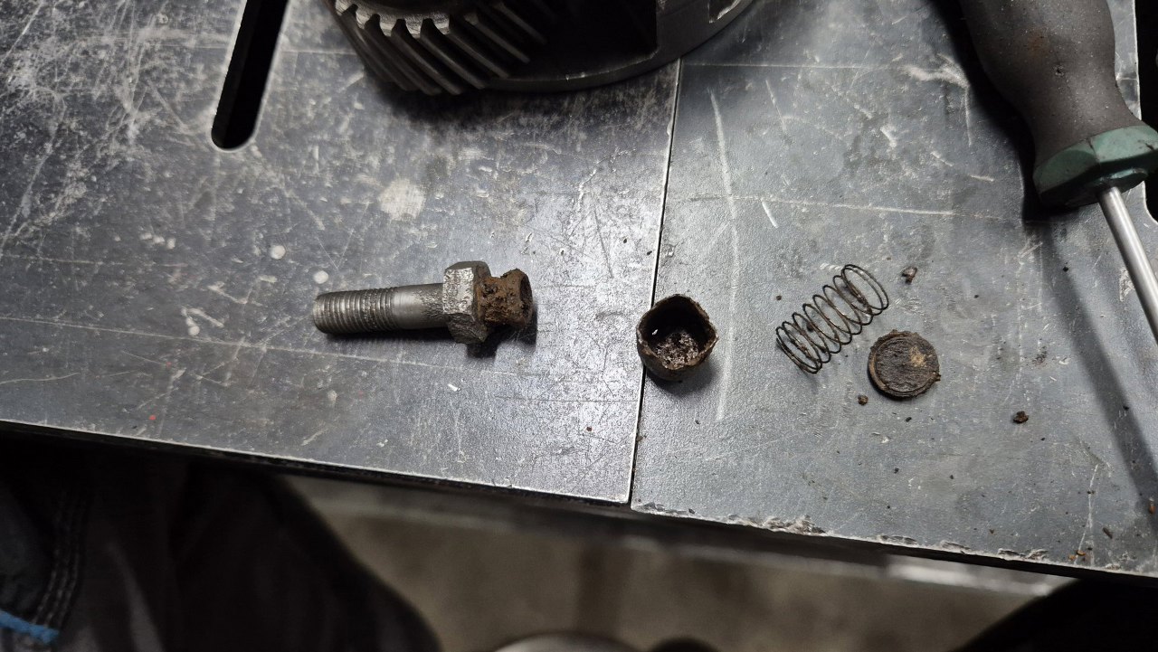 W późniejszych modelach odpowietrznik mostu składał się z przelotowej śruby i kapturka na niej, tu jest jeszcze filcowy koreczek i sprężyna.