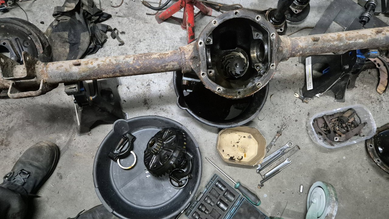 Zapowiada się upojny czas podczas mycia półosi i obudowy mostu w środku... to pomarszczone to zestarzały osad z oleju przekładniowego. Co ciekawe, nawet nie pachnie tak, jak byś się spodziewał.