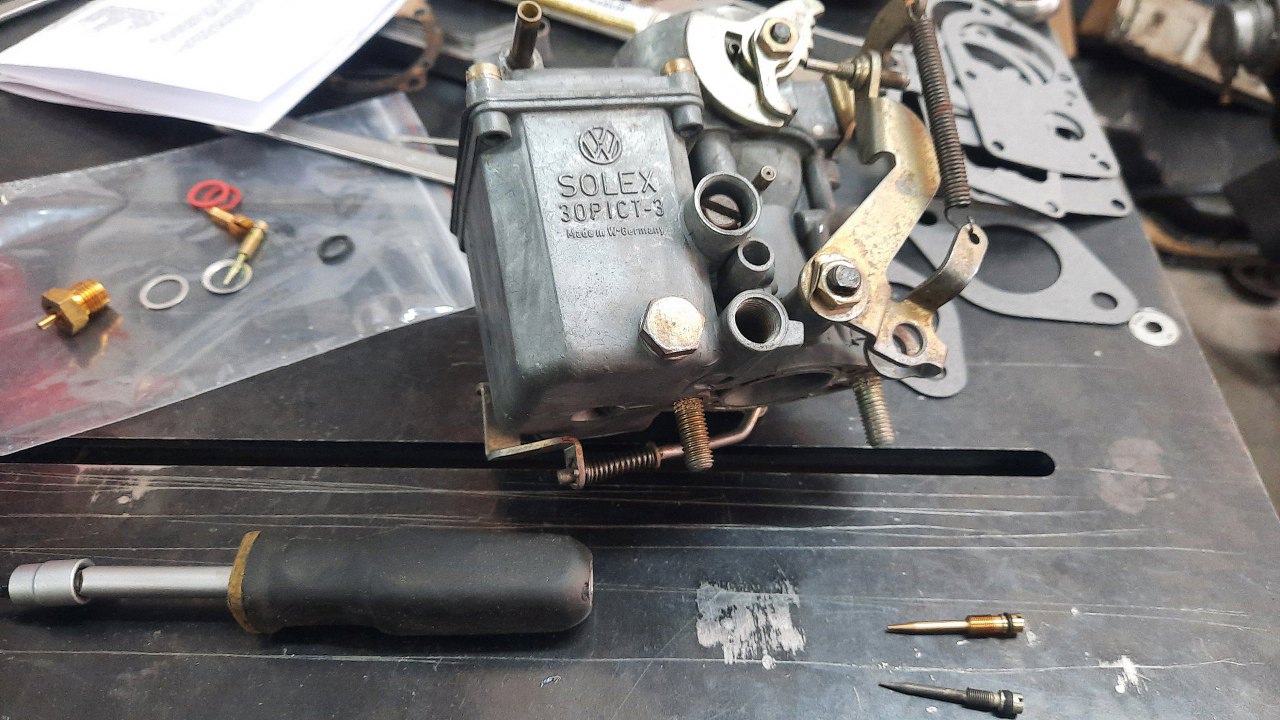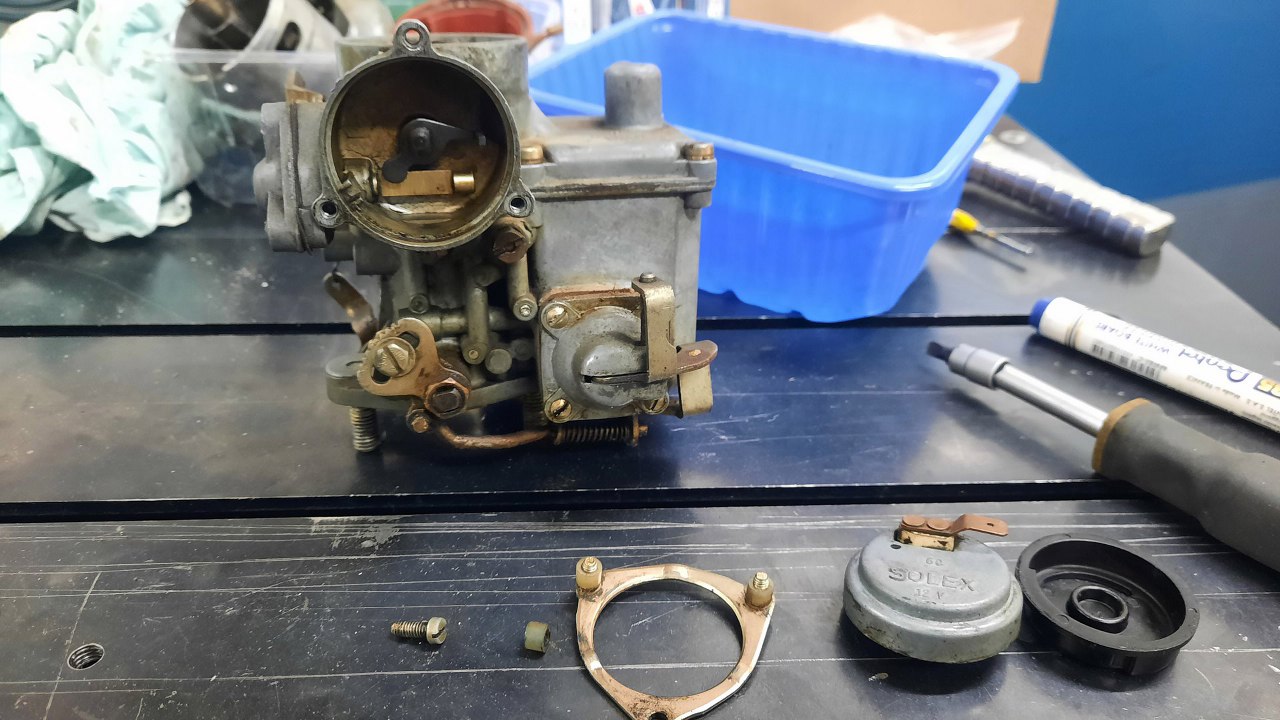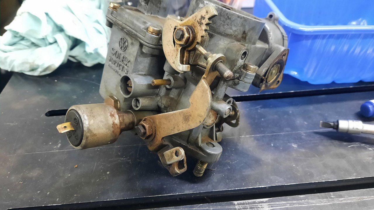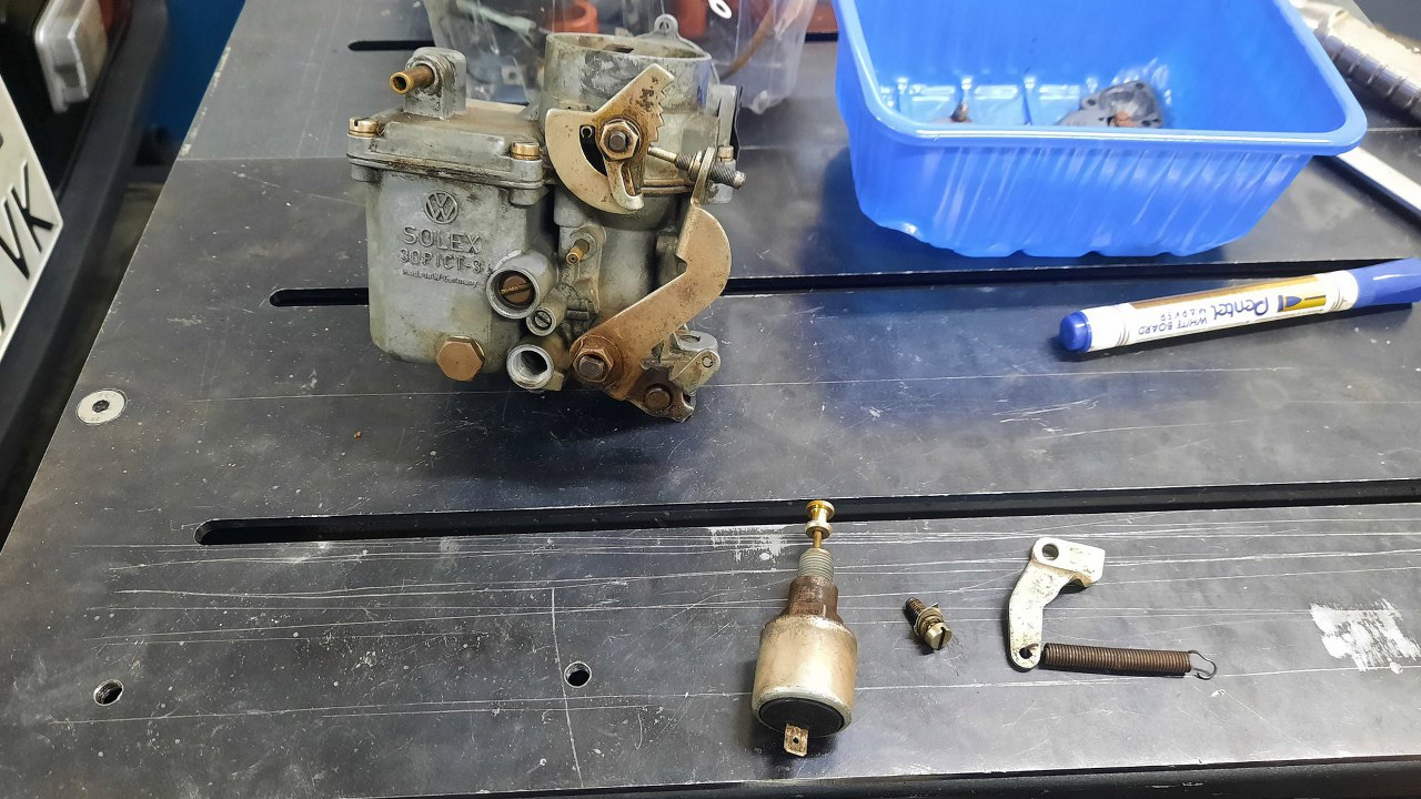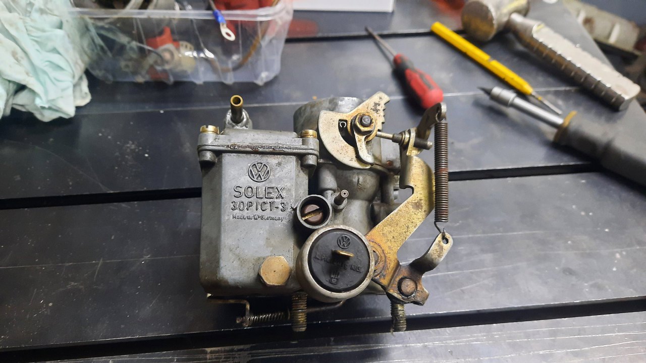 Do uruchomienia Garbusa będzie jeszcze, oprócz aparatu zapłonowego opisanego na poprzedniej stronie, potrzebny sprawny gaźnik. Tu akurat mamy SOLEX 30PICT-3.