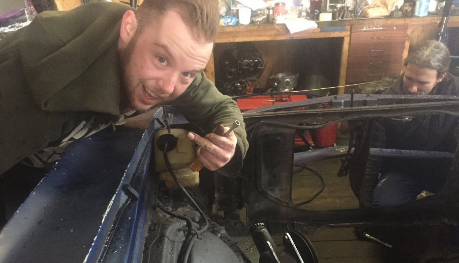 Okazało się, że Grzesiek, właściciel Monte Carlo, umówił się już z autem na zrobienie blacharki i lakieru, ale termin jest dość bliski i nieubłagany. Powstało zagrożenie, że nie ogarnie samodzielnie przygotowania auta do remontu. Tu wkroczyła do akcji super ekipa Garażu Marcina, która za symboliczną opłatą w postaci jedzenia (dodatkowo wspartą sutą fakturą, która pozwoli wylegiwać mi się przez 3 miesiące w prestiżowym miejscu na Bahamach) podjęła się rozłożenia całości w połączeniu z dokumentacją i katalogowaniem części. Na zdjęciu poniżej widać nieodstępujący nas ani na krok entuzjazm.