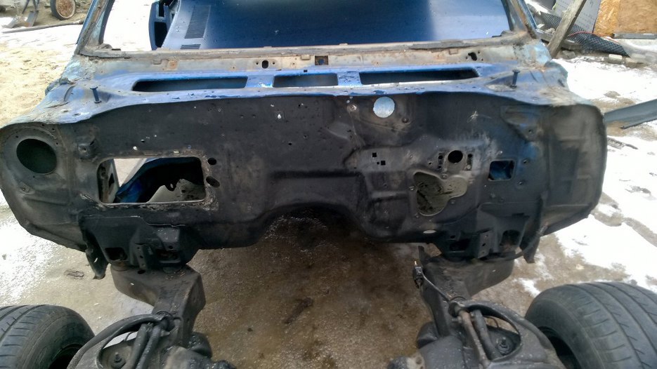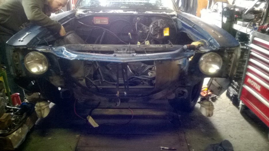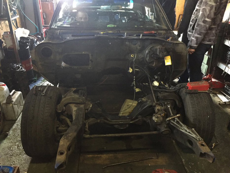 Tak wyglądał przód po zdjęciu blach. Została jeszcze wiązka elektryczna, układ hamulcowy i kolumna kierownicy do zdemontowania.