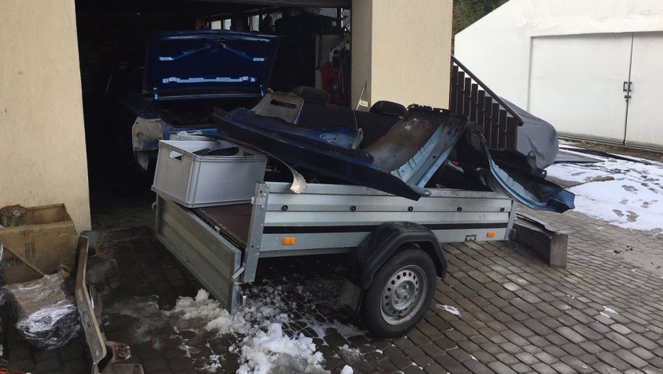 Potem jeszcze rozłożone zostały na części pierwsze drzwi. Całość prac udało się wykonać w rekordowym wręcz czasie. Następnie karoseria trafiła do blacharza, a właściciel zabiera się za przygotowywanie poszczególnych części do następnego etapu prac. Wszystko zabrał do siebie od garażu (ja nie mam obecnie miejsca, żeby je przechować), ale stopniowo będzie je przywoził, żebyśmy je odnowili.