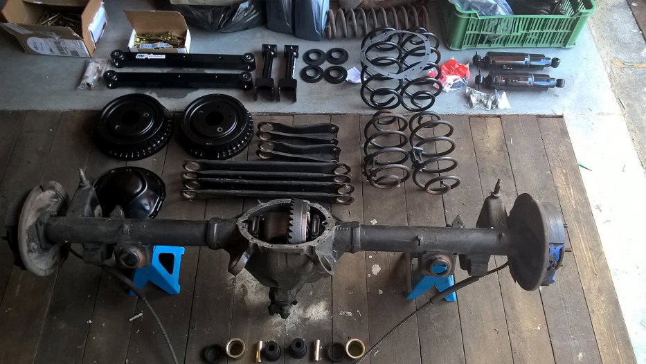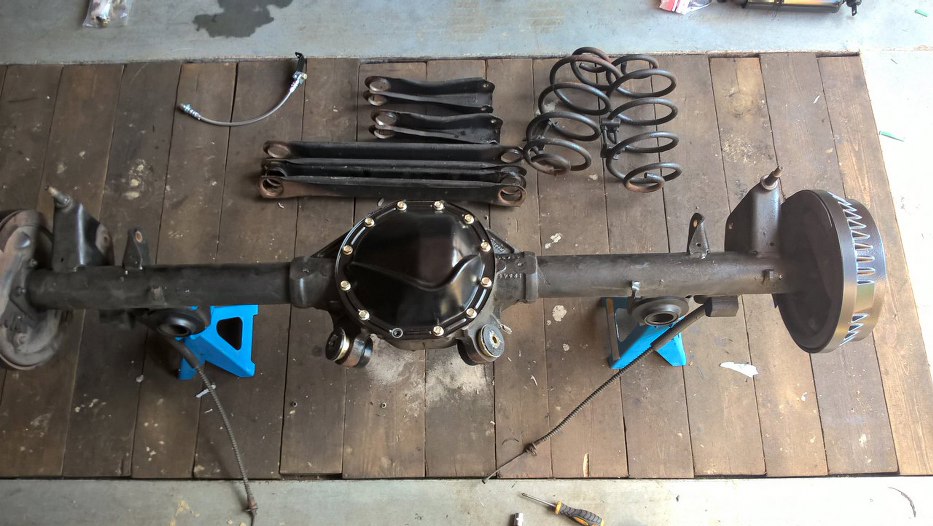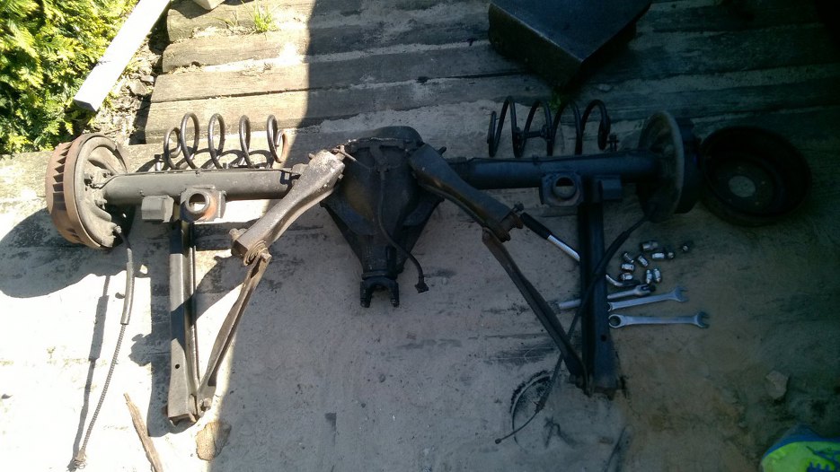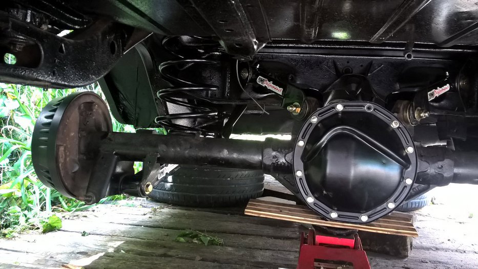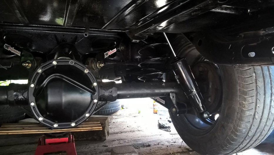 Przeskoczmy nieco do przodu - bębny i pokrywa mechanizmu różnicowego pomalowane proszkowo, most zostaje jak jest, nowe wahacze (sztywniejsze, o przekroju prostokątnym, a nie profilu C, no i z grubszej stali), nowe sprężyny bez wynalazków je podwyższających, nowe amortyzatory.