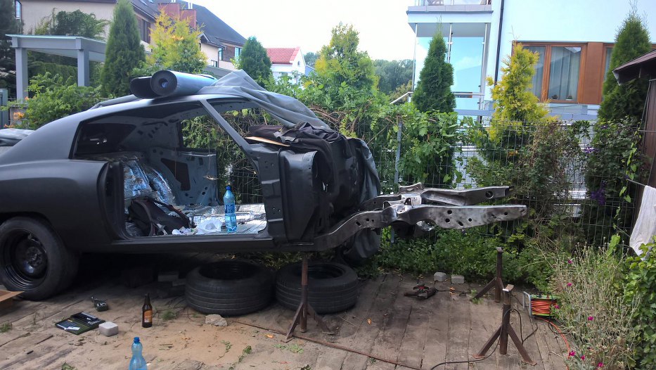Po postawieniu samochodu na tylne zawieszenie przód został uniesiony, żeby łatwiej było oczyścić przednią część ramy.