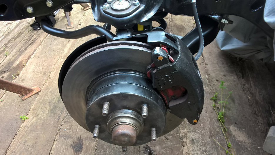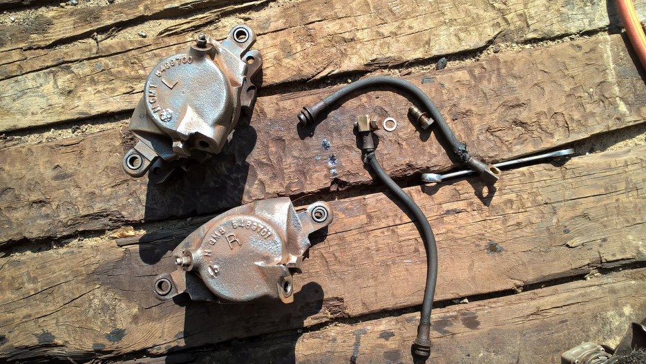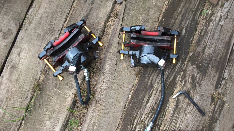 Zaciski pomalowane. Nowe przewody hamulcowe i śruby mocujące. Klocki te, co były.