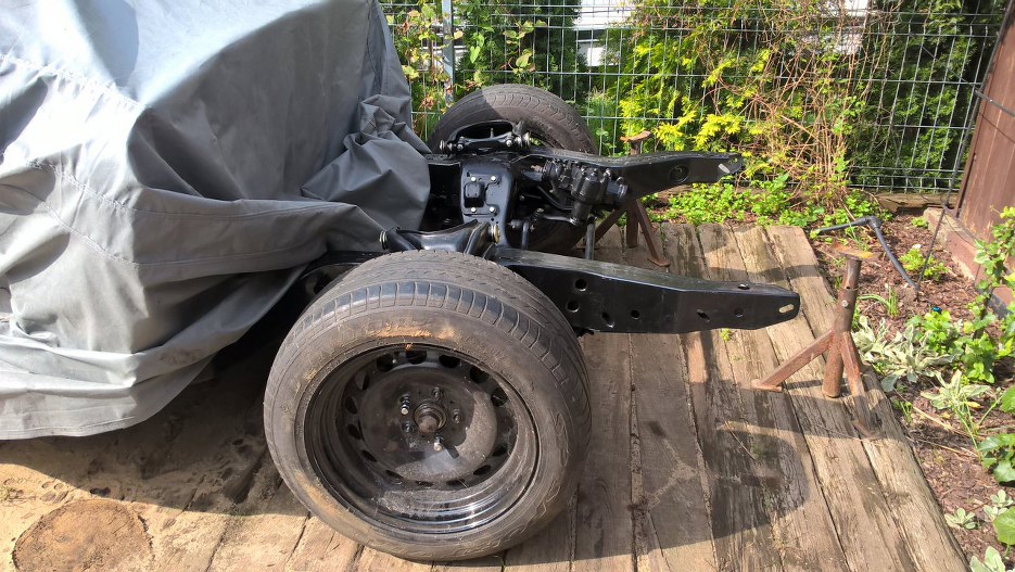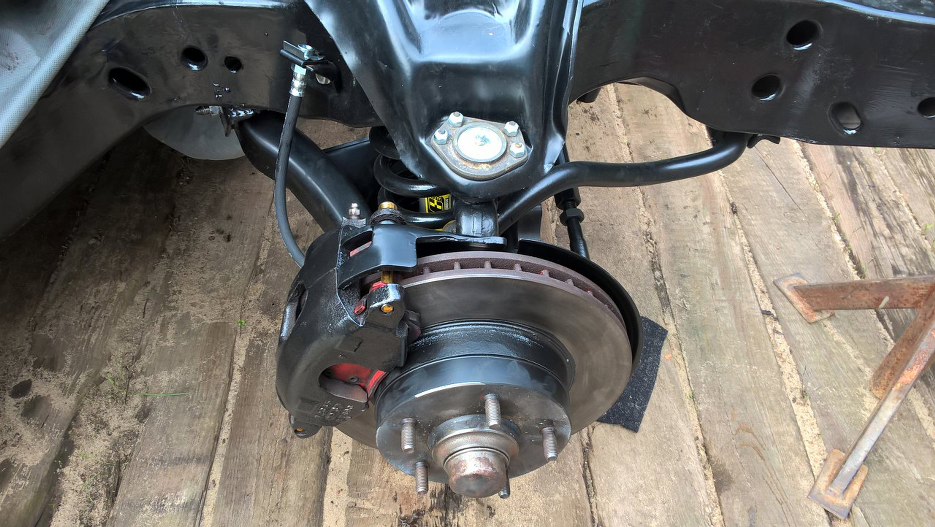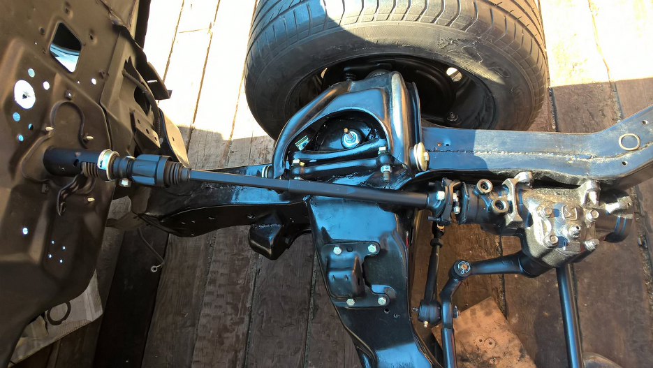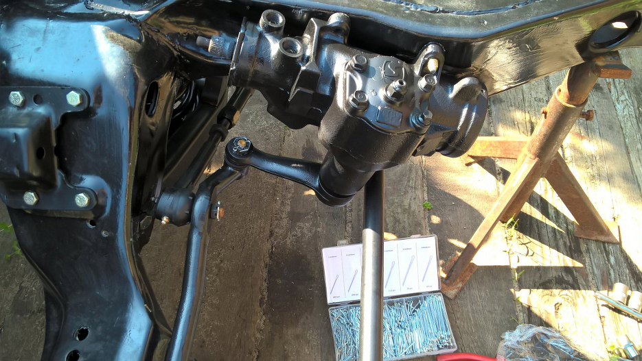 W międzyczasie też oczyściłem i pomalowałem przekładnię kierowniczą, która teraz trafiła na swoje miejsce w ramie.