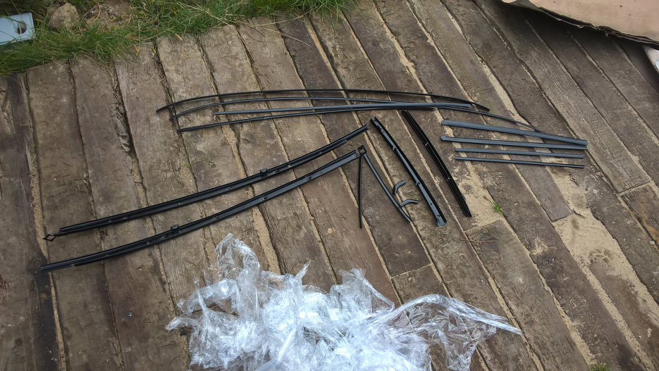 Korzystając z ładnej pogody rozłożyliśmy listwy ozdobne na ziemi. Kiedyś błyszczące (oryginalnie ze stali nierdzewnej), teraz wypiaskowane i pomalowane proszkowo.