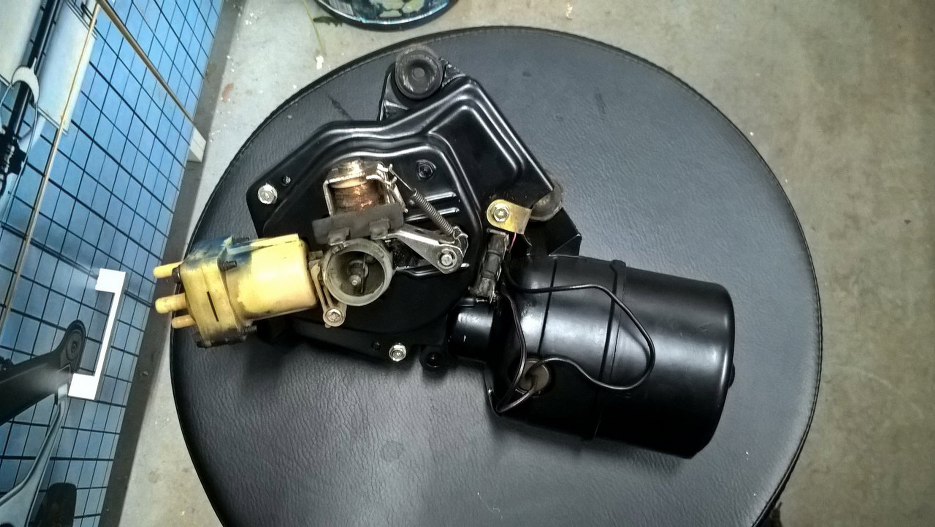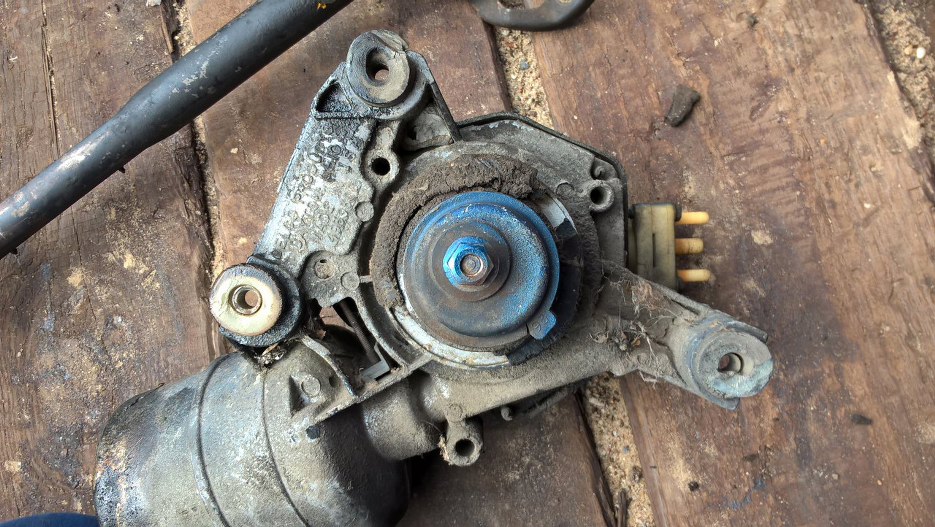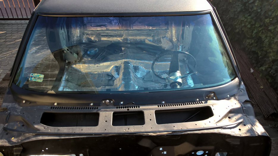 Po odnowieniu mechanizm wycieraczek przykręciłem na miejsce i Grzesiek (właściciel) mógł przykręcić na gotowo dolną listwę ozdobną przedniej szyby.