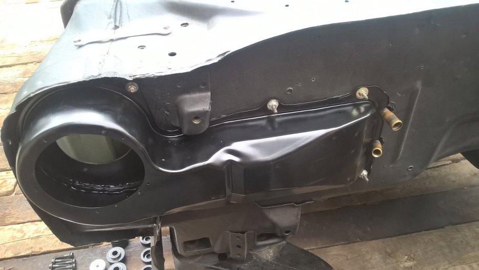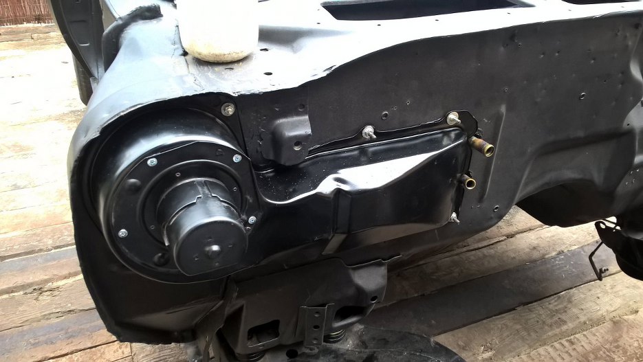 Pucha nawiewu wewnątrz auta też została oczyszczona, sprawdziłem też nagrzewnicę. Ta część z komory silnika została wypiaskowana i pomalowana proszkowo.