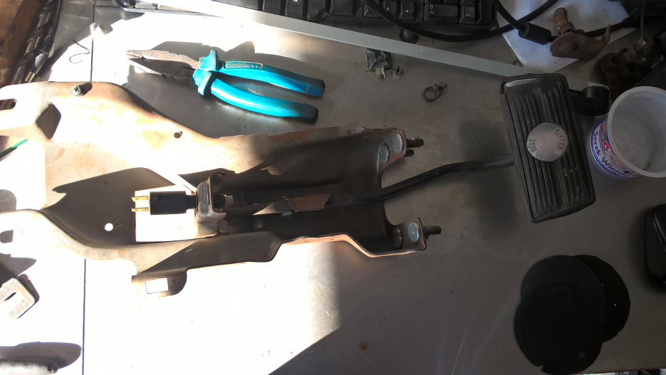 Pedał hamulca z mocowaniem wygląda na razie słabo.