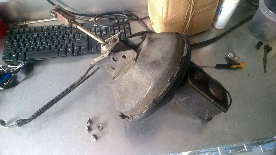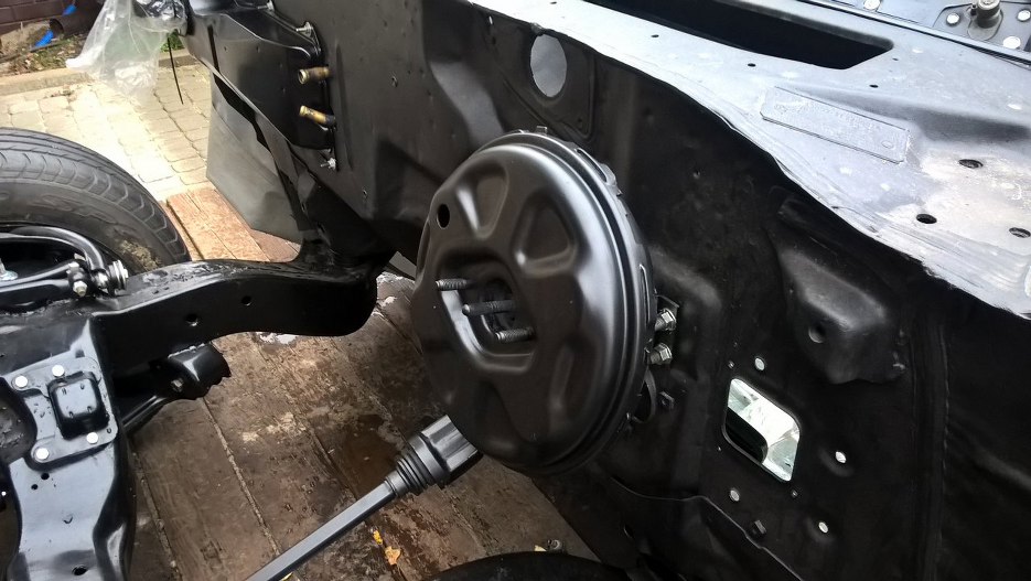 Odnowione serwo hamulcowe już na swoim miejscu, podłączone do pedału hamulca.
