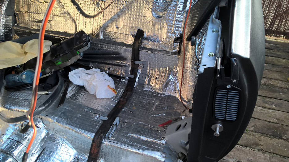 Przy nogach kierowcy już sporo rzeczy jest na miejscu.