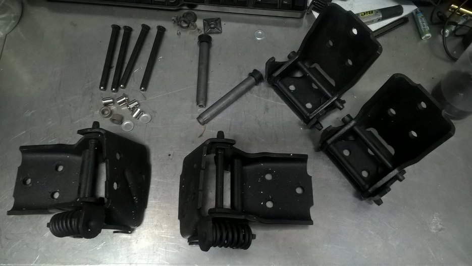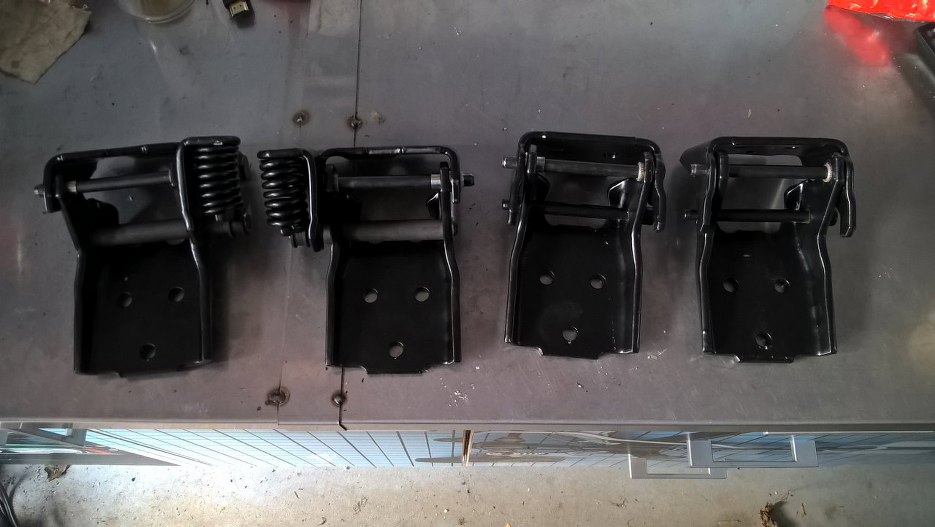 Zawiasy drzwi miały luzy, więc trzeba w nich wymienić to i owo. Zostały pomalowane tak samo, jak karoseria.