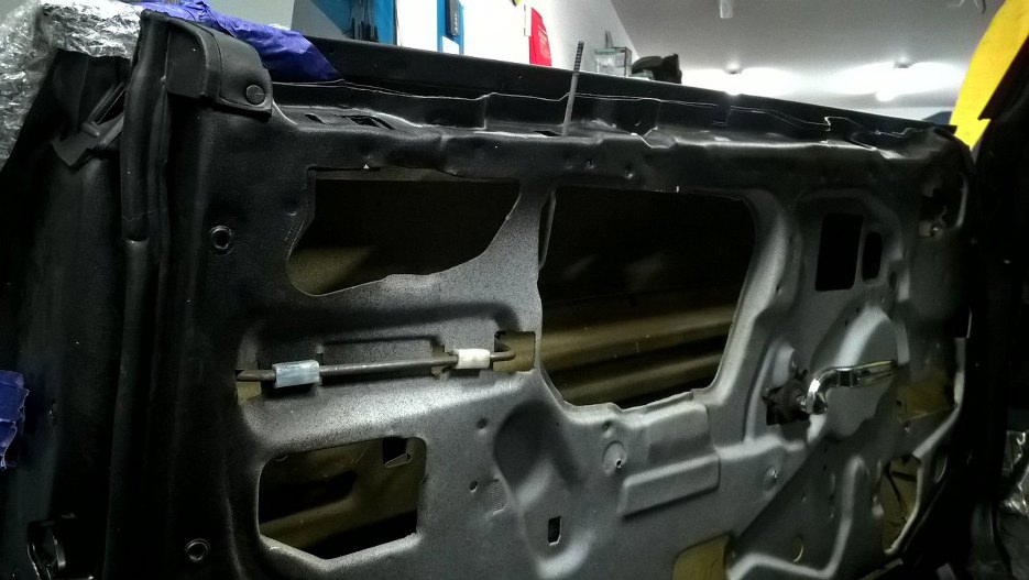 Po wielu zabiegach mających na celu zabezpieczenie lakieru przed obdrapaniem udało się założyć, przykręcić i wstępnie wyregulować drzwi.
