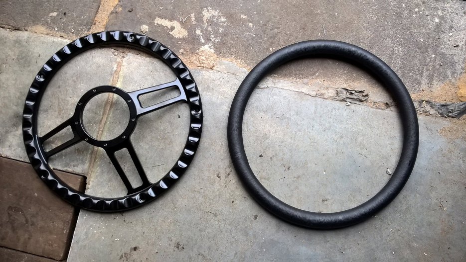 Miałem jeszcze zająć się kierownicą. Grzesiek, właściciel, kupił taką. Raził go jej połysk...