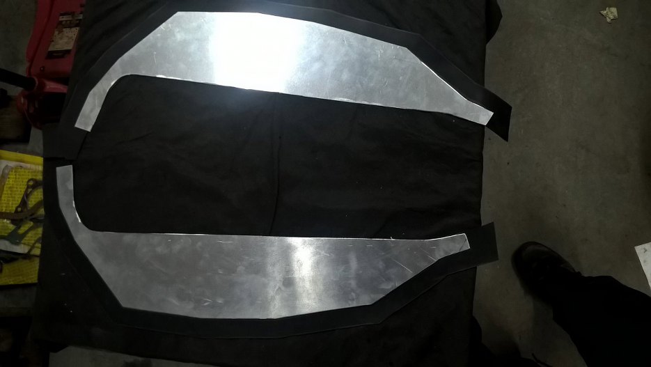 Następnie wyciąłem na podstawie tego szablonu taki sam kształt z blachy aluminiowej, a na zewnętrzną część wyciąłem paski z EPDM.