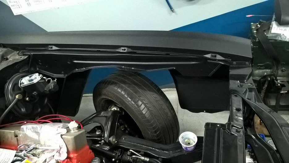 Przymierzyłlem też nowy błotnik wewnętrzny. Stare były trochę połamane, więc Grzesiek kupił nowe. Niestety jest jeden problem z przodu...