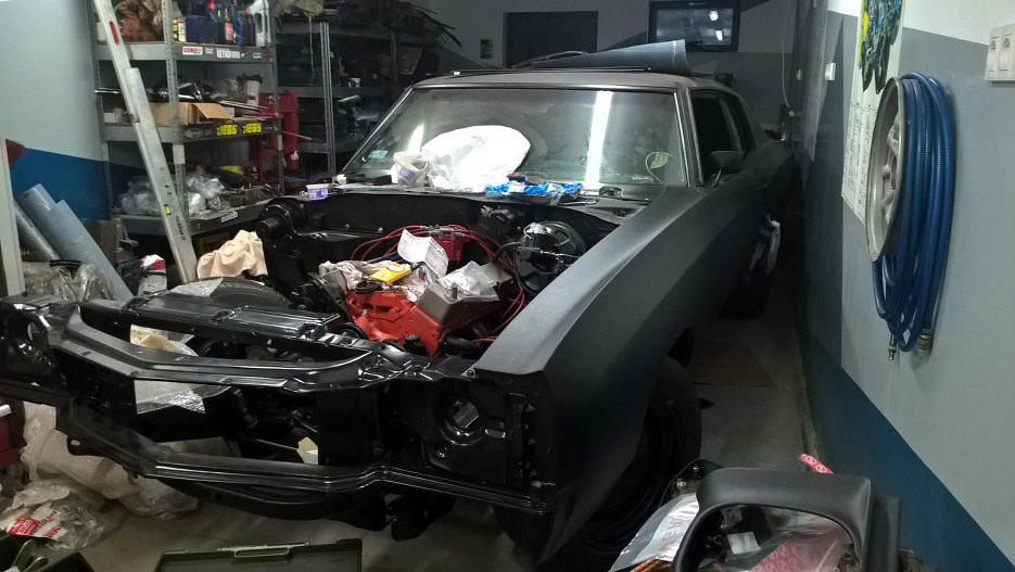 Około 8 cm brakuje. Nie wiemy czemu, błotniki są do Monte Carlo z tego rocznika, wszystko poza tym pasuje. Zobaczymy co na to powie sprzedawca w stanach, a na razie zostawiamy t nieprzykręcone.