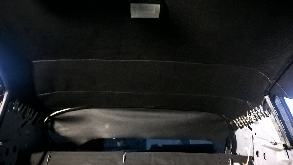Popracowaliśmy też trochę nad przymocowaniem podsufitki. Udało się ją nawet w miarę ponaciągać.