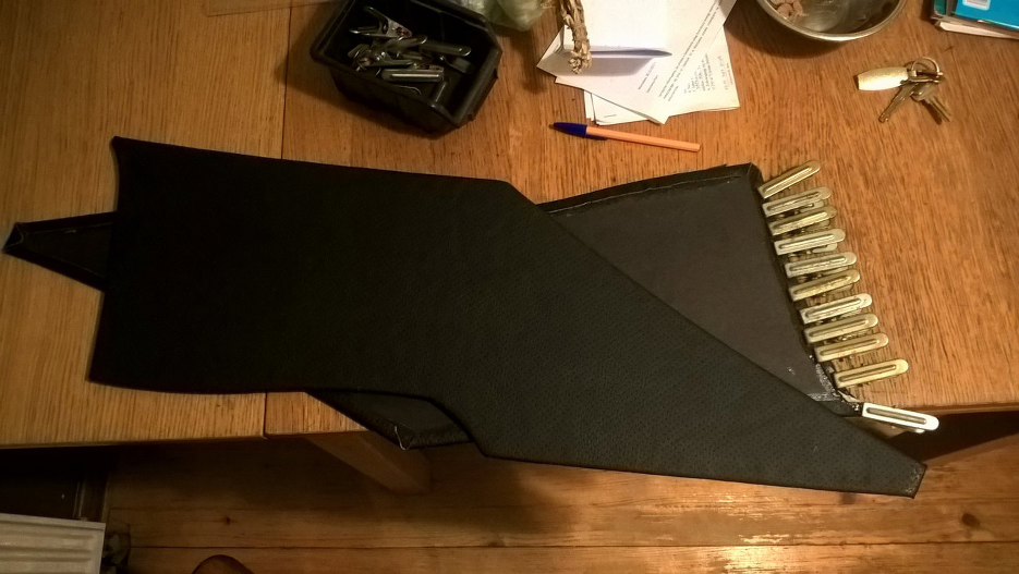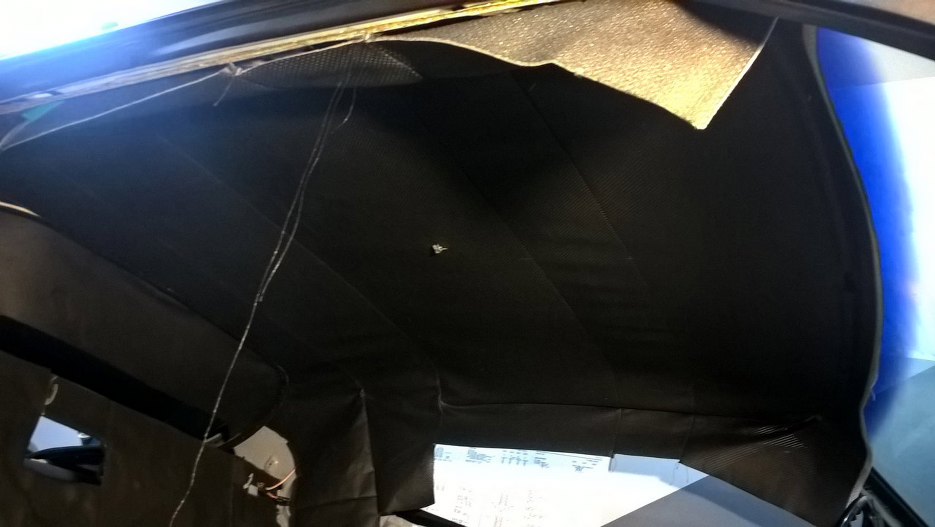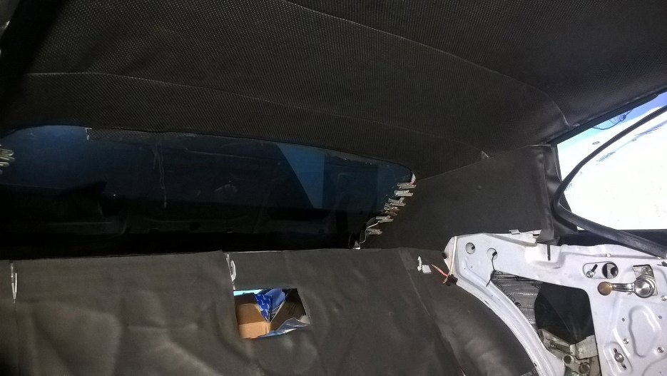 Tylne słupki miały być zasłonięte elementami tapicerowanymi. Oryginały były bardzo zniszczone, więc Grzesiek kupił nowe, które okleiłem materiałem z podsufitki.