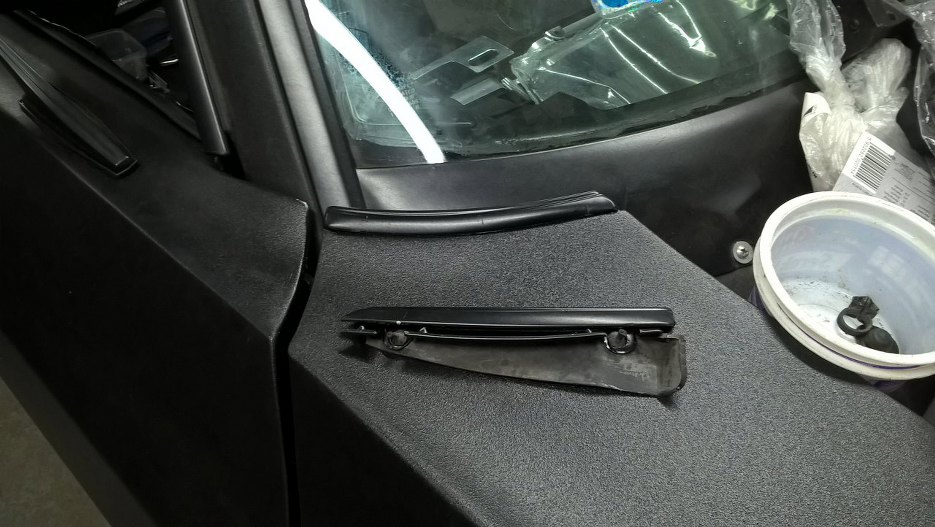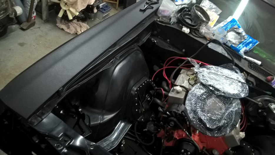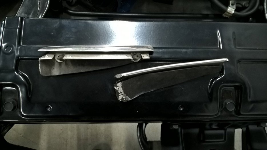 Ale już czarne. Gumki przyczepione do nich zostały wyczyszczone. Następnie nałożyłem te listewki na końce błotnika przy szybie przedniej. Na masce jest też podobna listwa.