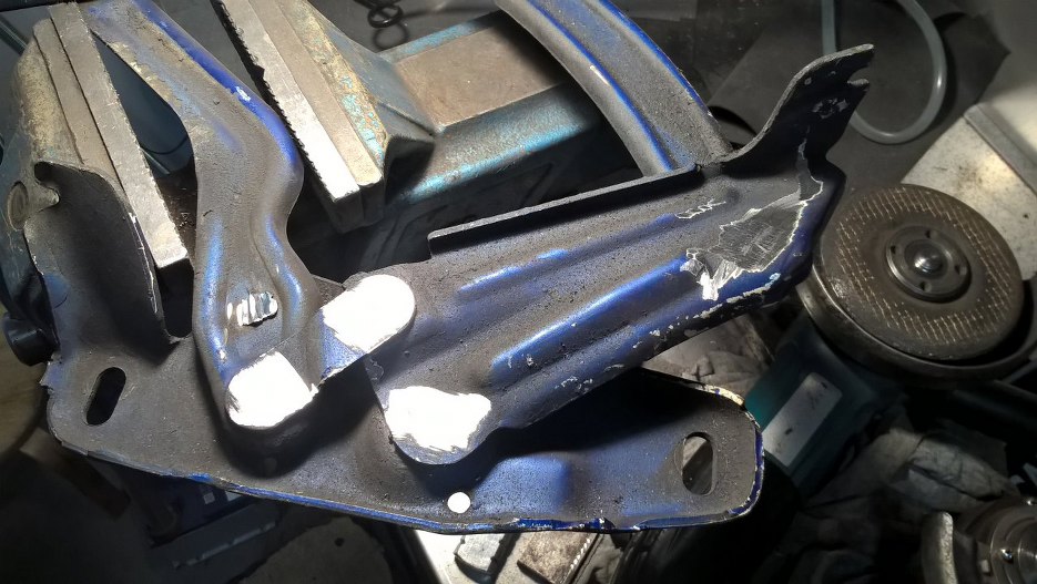 Zawiasy maski wyglądają już słabo. Do tego mają luzy na łączeniach...