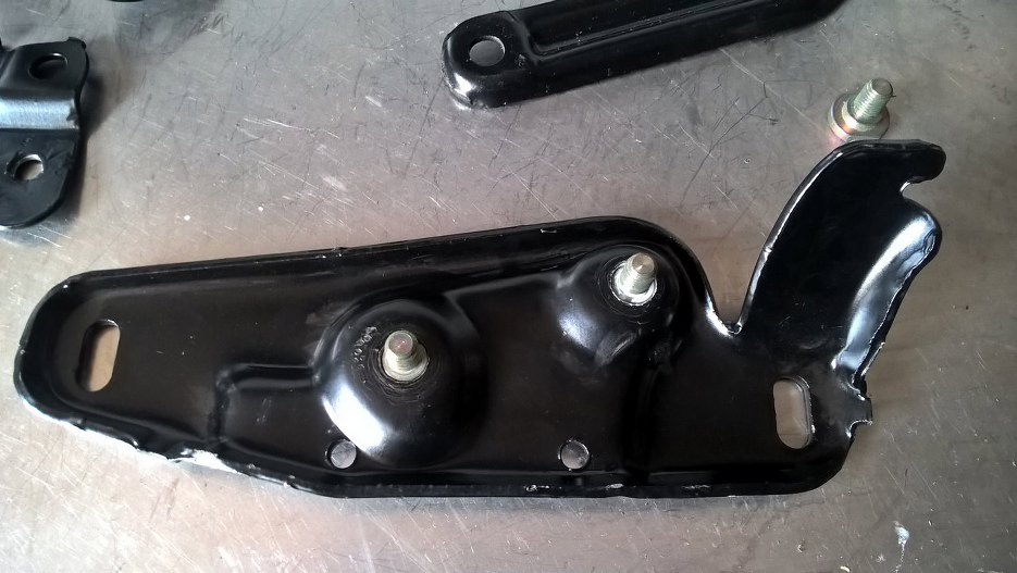 Zamówiłem też dotoczenie bolców zastępujących oryginalne nity w mechanizmie zamka maski. Cały ten mechanizm już jest odnowiony i zmontowany.