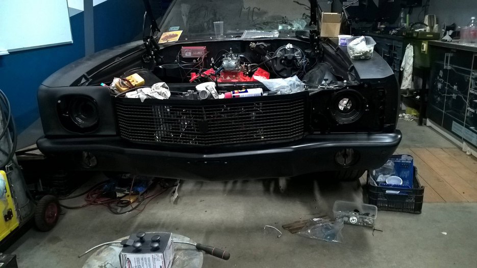 Po długich i totalnie bezowocnych próbach wyprostowania przedniego zderzaka poddaliśmy się. Grzesiek stwierdził, że na każdym zdjęciu Monte Carlo, które jest w stanie znaleźć w internecie, zderzak przedni jest krzywy, więc jest to cecha fabryczna, a nie wada. Tego się będziemy trzymać :). Dlatego zderzak odwiozłem do malowania proszkowego.