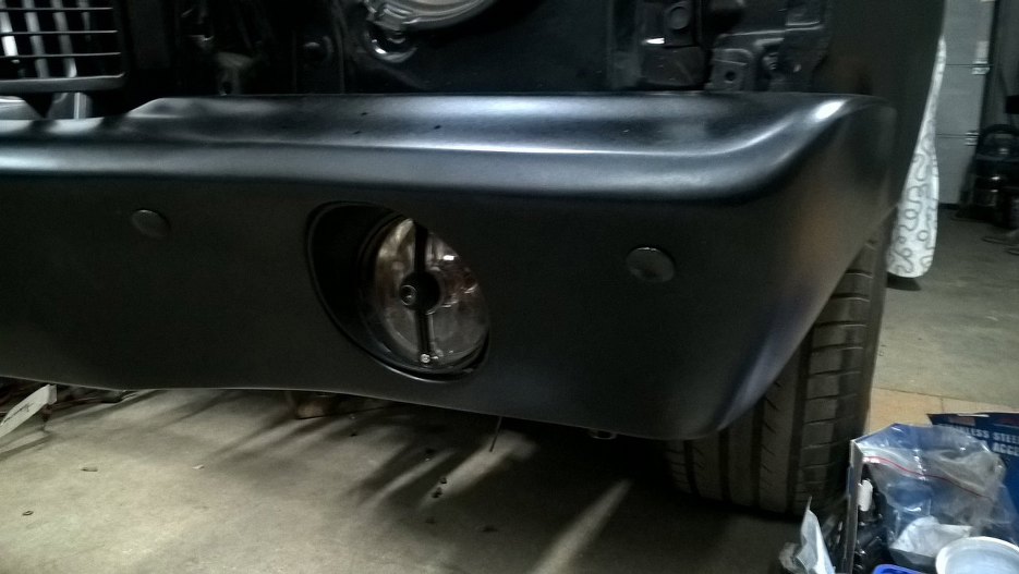 Zmontowałem mocowania i ułożyłem zderzak wstępnie zaczepiony o ramę pod autem. Teraz trzeba przykręcić lapmki p[ozycyjne/kierunkowskazy, bo po założeniu zderzaka na miejsce nie będzie do nich w ogóle dostępu.