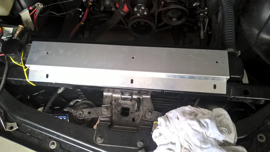 Chłodnica zamocowana była fabrycznie od góry blachą, która nie pasowała do obecnej, ciut większej, chłodnicy. Zaprojektowaliśmy z Treflem profil nowej blachy.