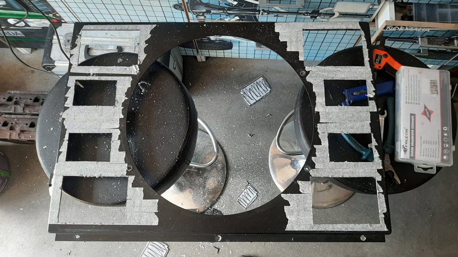 W płaskowniczkach i obudowie wiatraka nawierciłem otwory, wyciąłem również prostokąty z EPDM.