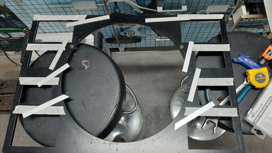 Po zaakceptowaniu projektu przez Grześka ("ale zamalujesz taśmę na czarno?") wyciąłem otwory.