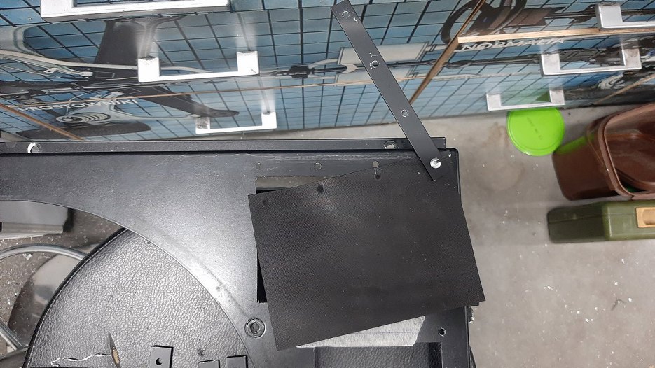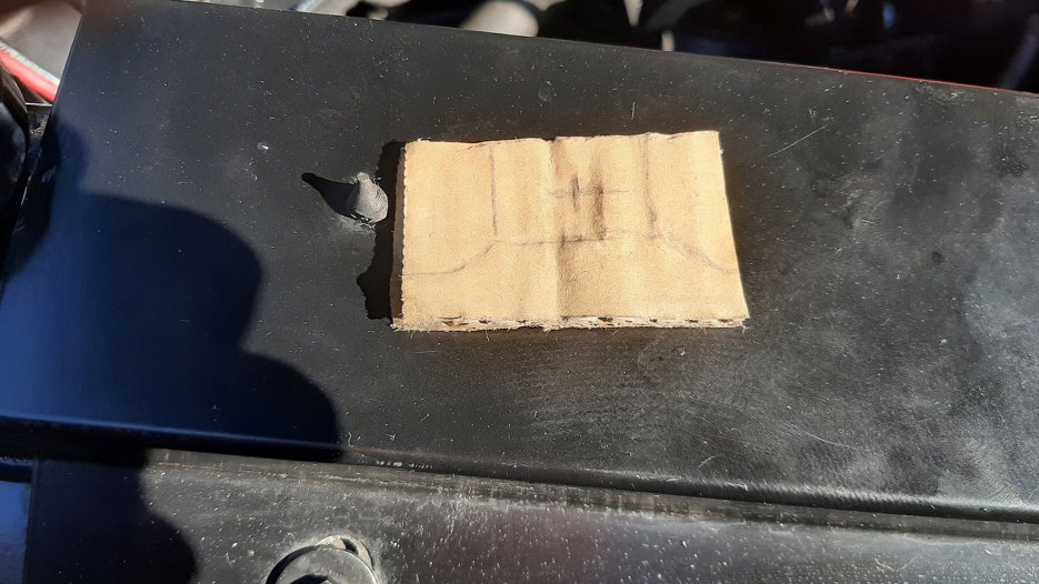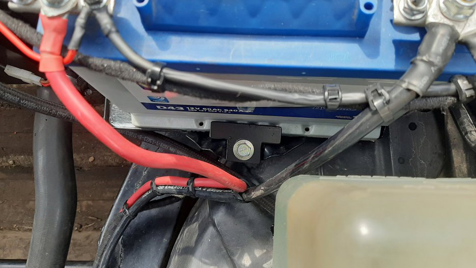 Wyciąłem ją jeszcze bardziej, wywierciłem otwór i pomalowałem na czarno. Akumulator już się nie rusza.