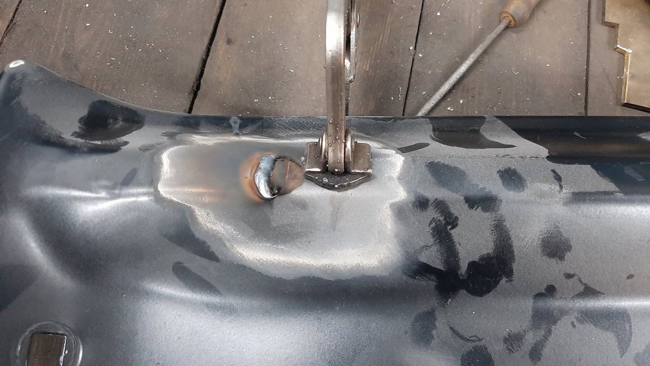 Zbiornik paliwa udało się zaspawać. Po ponownym malowaniu miał trochę paprochów w środku, więc wykombinowałem nową końcówkę do odkurzacza, żeby się ich pozbyć.