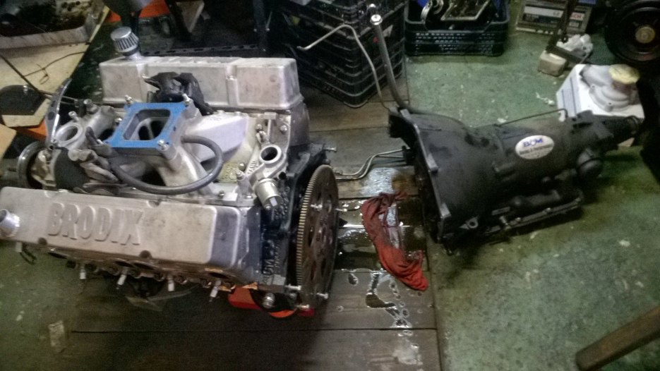 Żeby to przechować aż będę miał czas się tym zająć, oddzieliłem skrzynię od silnika. Skrzynia też solidny aftermarket, B&M Performance, jakiś malutki konwerter... A do tego tylny most, co prawda ze szperą, ale za to z rozsypanymi gumami zawieszenia :). Coś z tego trzeba będzie wyrzeźbić :)
