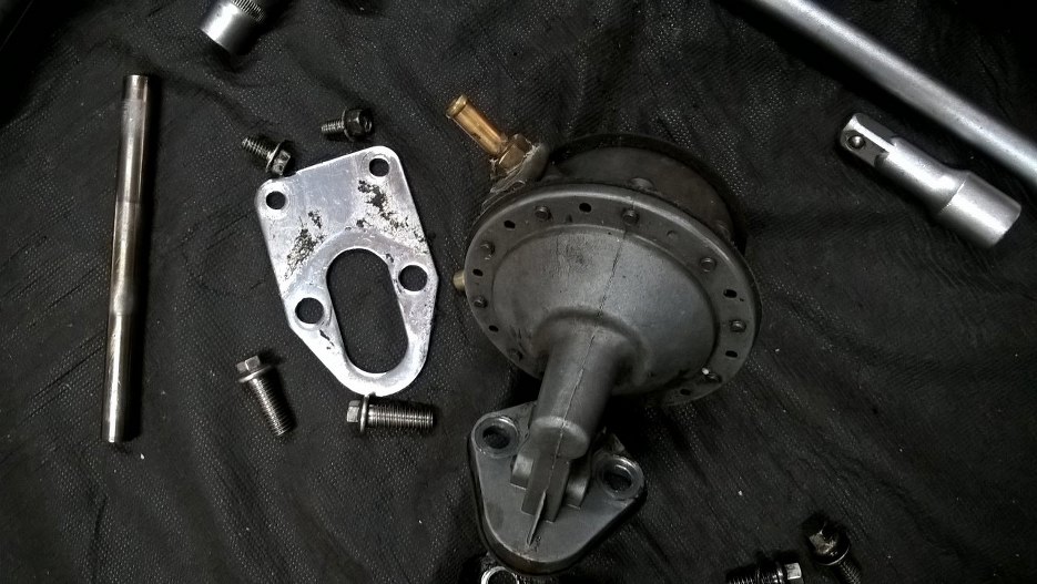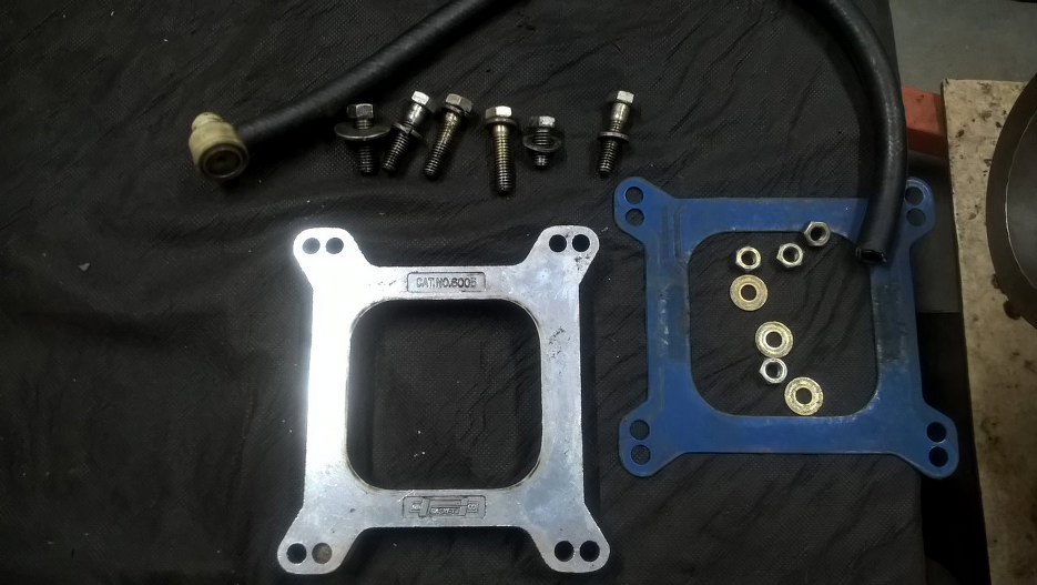 Pierwsza rzecz do odkręcenia to dystans gaźnika - carb spacer. Podobno trochę momentu dodaje. Jestem skłonny w to uwierzyć, bo wydłuża dolot.