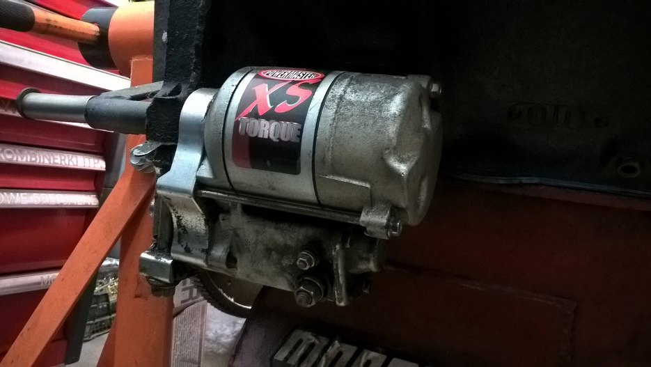 Kolejna aftermarketowa rzecz, rozrusznik. Zdecydowanie mniejszy od oryginalnego.