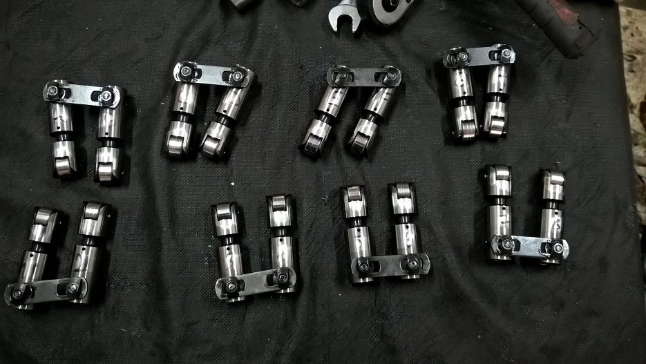Wyjąłem i oznaczyłem popychacze zaworowe. Oczywiście mają rolki, ale to już było oczywiste wcześniej, bo mają elementy je łączące, które mają je ustalać we właściwej pozycji, żeby rolka toczyła się prostopadle do wałka rozrządu.