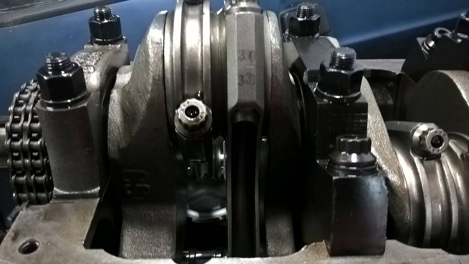 Wszędzie widać śruby ARPa. Korbowody w kształcie litery H.