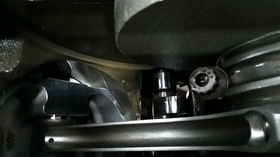 A tu niespodzianka - powinny być hydrauliczne popychacze, ale wydaje mi się, że są mechaniczne. W takim silniku może to oznaczać w zasadzie jedno - wałek tak ostry i tak ukierunkowany na pracę na wyższych obrotach, że hydraulika byłaby niewskazana. A skoro tak, to dźwigienki muszą być regulowane. Będę się musiał nauczyć jak, bo jedyna śruba mająca znamiona regulacyjnej jest wkręcona w szpilkę wystającą z głowicy, na którą nakłada się dźwigienkę.