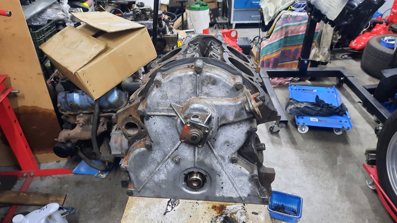 Historia tego silnika jest długa i zawiła :). Najprościej rzecz ujmując, Piotrek miał problem z silnikiem, coś tam panewki były już zużyte, ogólnie raczej trzeba by remont zrobić, ale ja byłem mocno zajęty. Wziął zatem drugi silnik, zapasowy, jeszcze bardziej podobno wymagający remontu, przywiózł do mnie, i zaczęliśmy coś tam rzeźbić, żeby przygotować go do wymiany w samochodzie. A Capri miało cały czas jeździć. I w sumie chyba jeździło, więc plan chyba był akceptowalny.