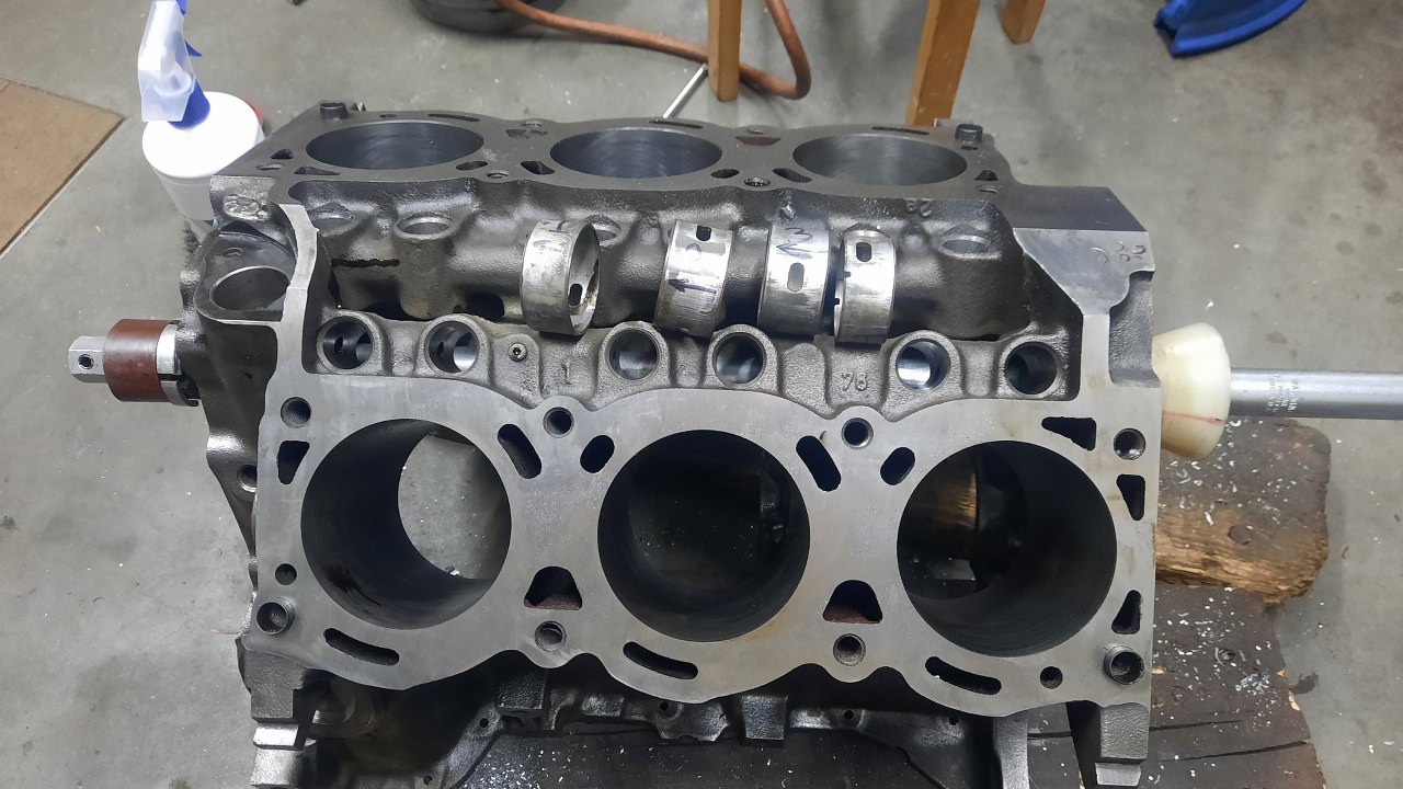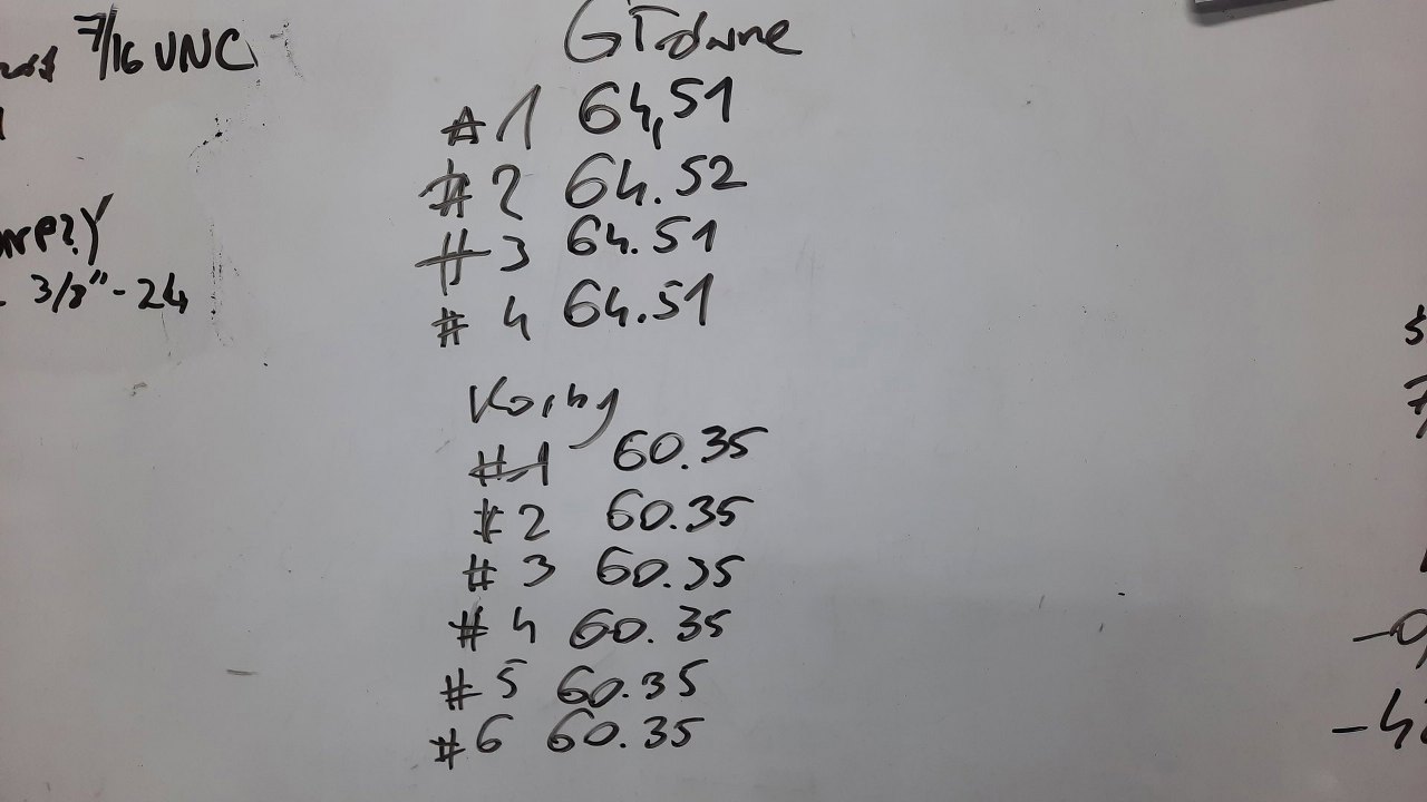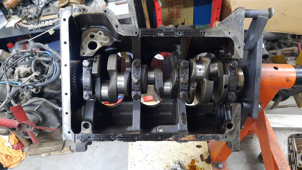 Potem nastąpiły pomiary. Cylindry były tylko 1 czy czasem 2 setki poza tolerancją, więc postanowiliśmy zostawić je w spokoju i tylko honować. Czopy wału są idealnie w wymiarze. Nie zmierzyłem luzów w panewkach, bo panewki były mocno wytarte i i tak nie było co mierzyć, a nowych jeszcze nie mamy.