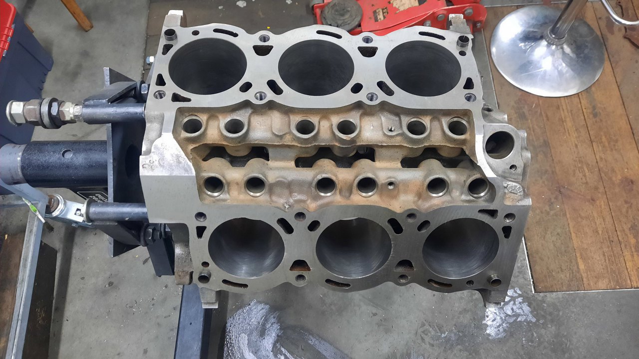 Zdjęliśmy dźwigienki zaworowe, potem jeszcze rozpiąłem zawory i całość leci na przegląd do szlifierni. Udało się nawet wstawić twarde gniazda zaworowe i ciut większe zawory.