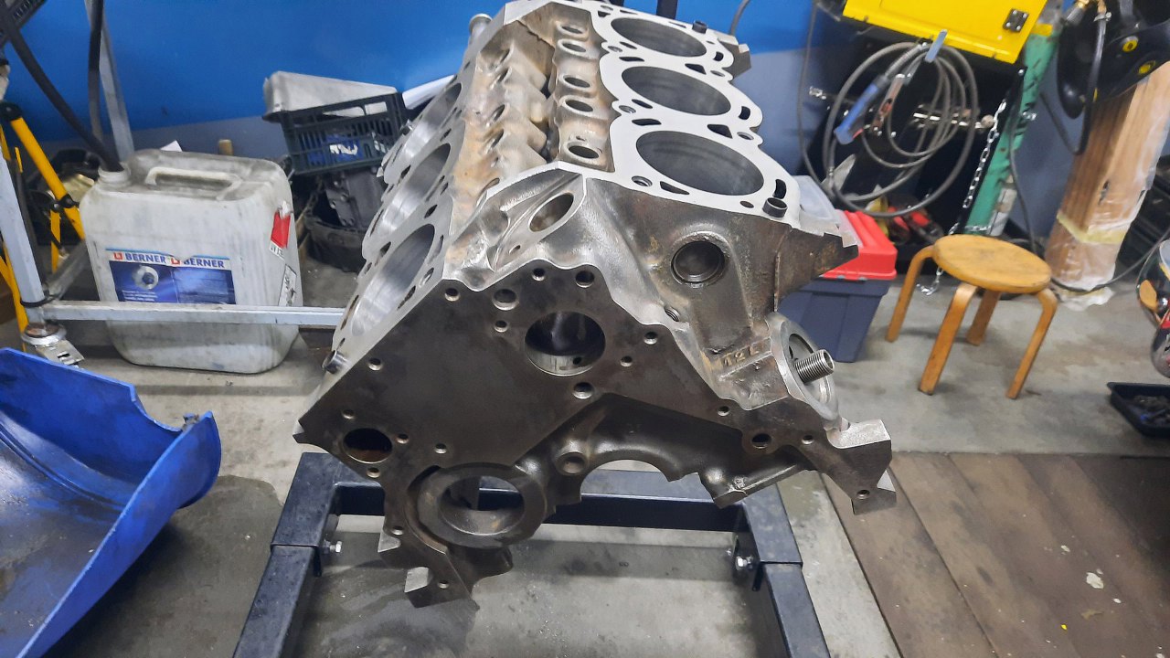 Długo, długo później, gdy blok już wrócił ze szlifierni, trzreba było przygotować go do mycia i malowania. Zaczęliśmy wykręcać wszystkie korki. Tu płaszcza wodnego.