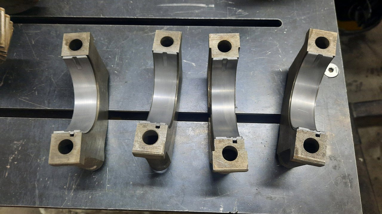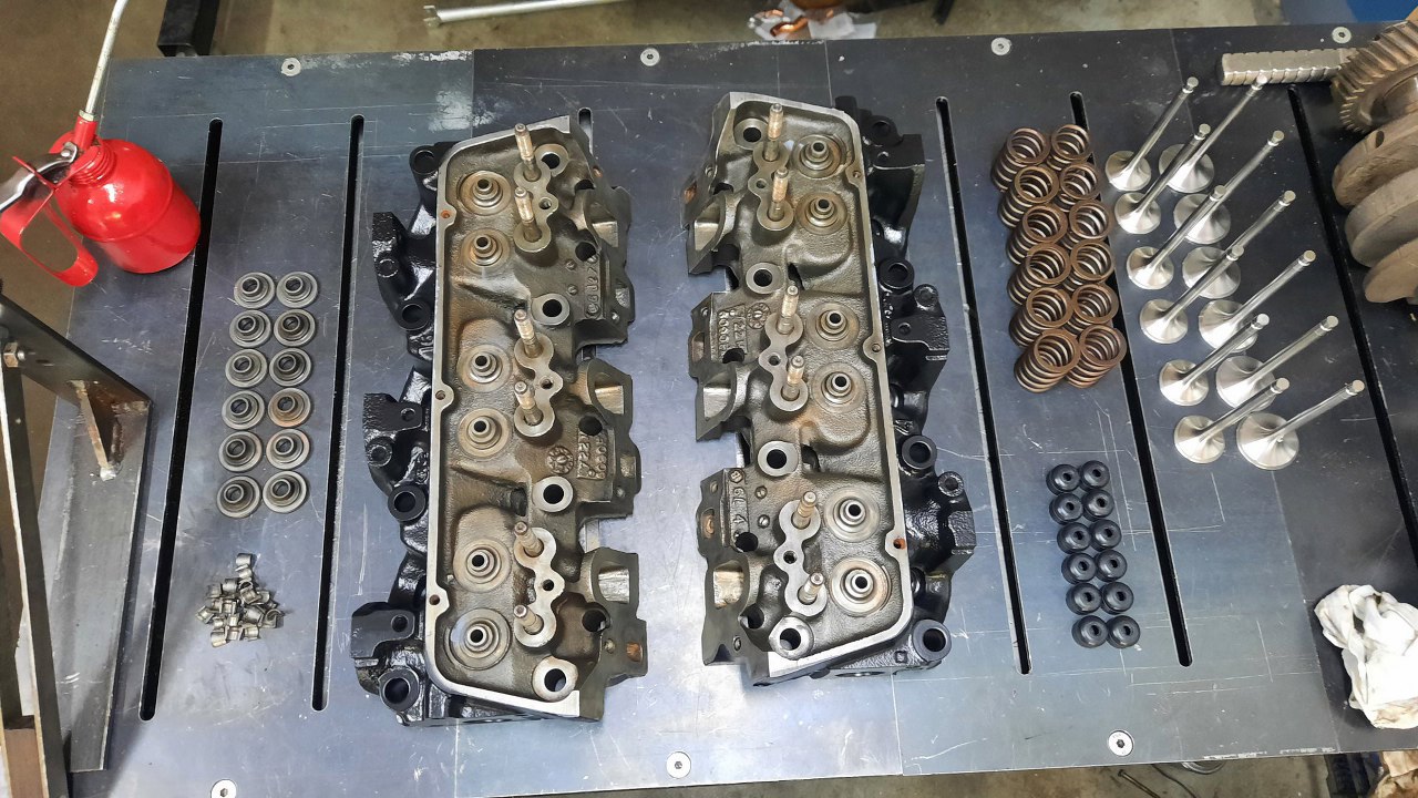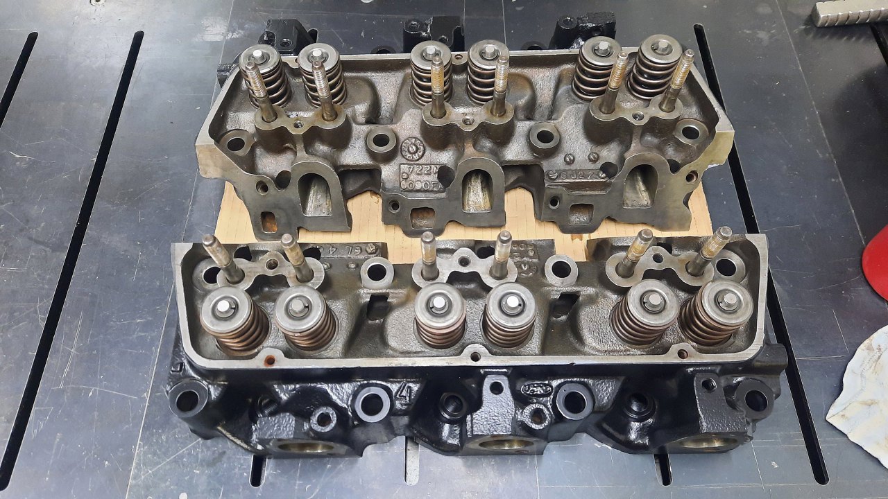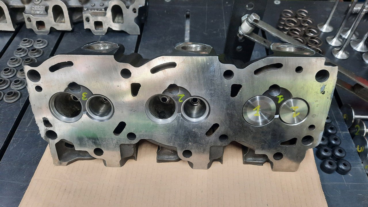 Ze szlifierni najpierw wróciły zrobione głowice. Oprócz zwykłej obróbki (prowadnice, planowanie itp.) miały wstawione ciut większe zawory ssące. Piotrek też poświęcił im kilka dobrych godzin, żeby nieco poprawić kanały.