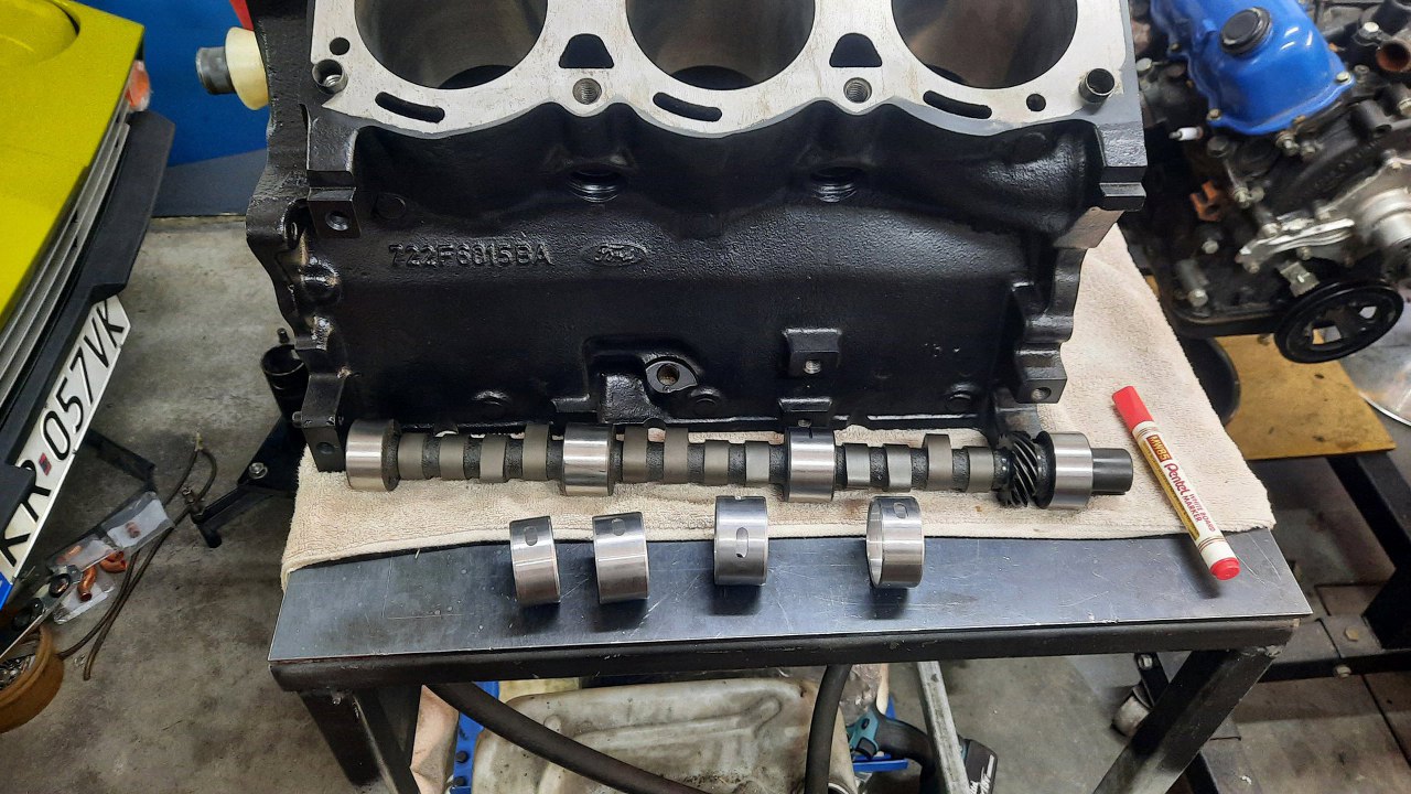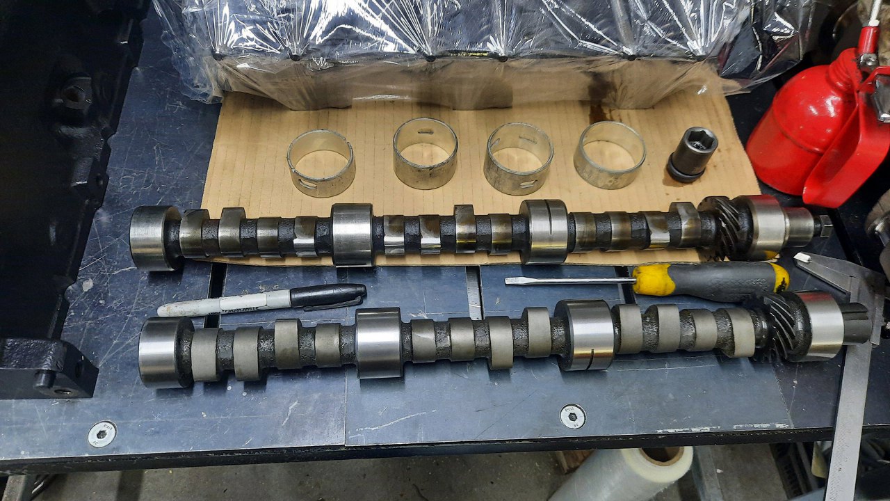 Będę wbijał nowe panewki wałka rozrządu. Sam wałek też jest nowy, nawet ciut lepszy niż fabryczny.