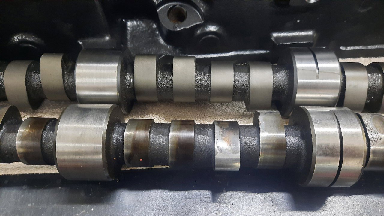 Stary wałek już był mocno powycierany. Niektóre krzywki miały nawet mocne wżery - widać to na przykład przy prawej krawędzi zdjęcia.