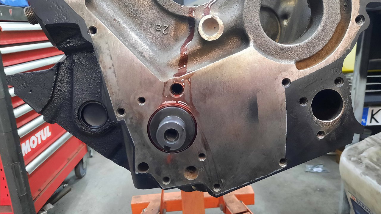 Wszystko na miejscu, dokręcone jak trzeba. Obraca się bez problemów, bo zdaje się, że i osiowanie podpór wału trzeba było w tym bloku zrobić.