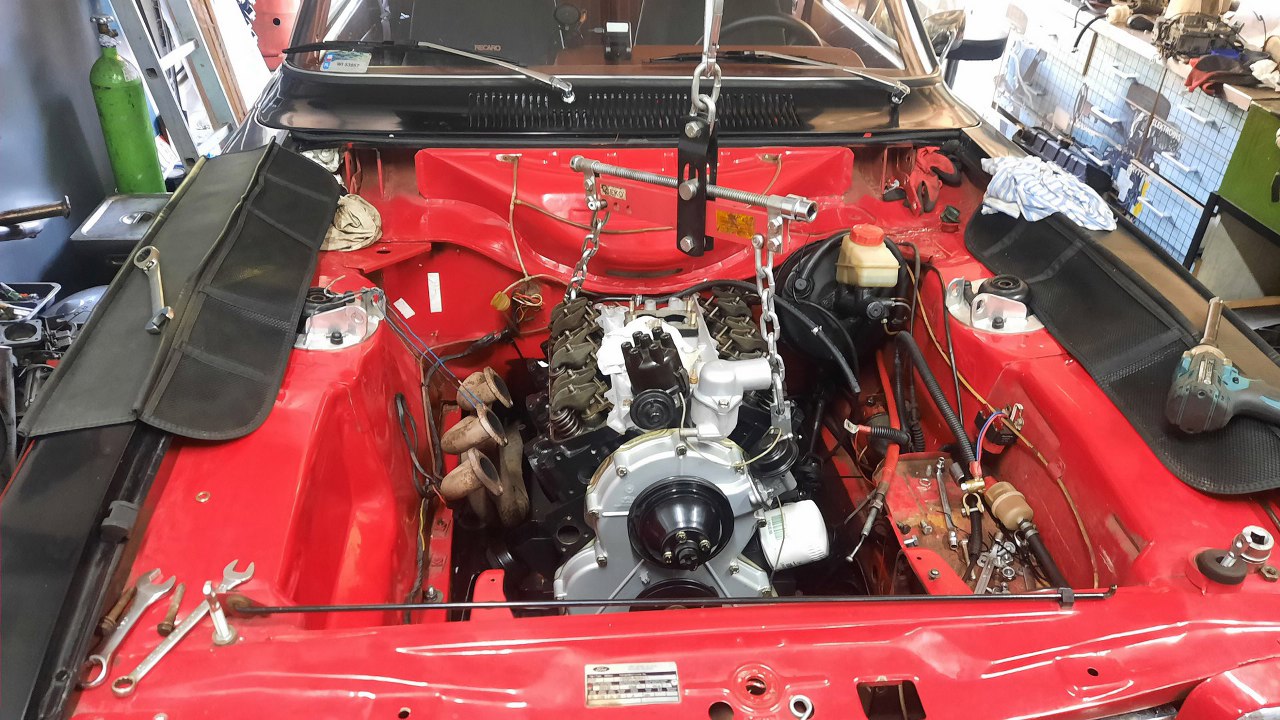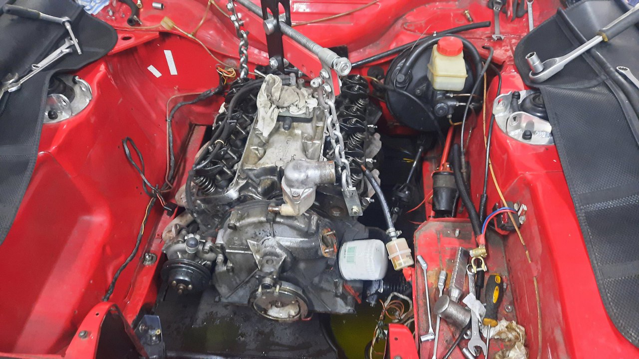 Na tym etapie Pioterk zaczął cisnąć, że w sumie można by ten silnik włożyć. W sumie rzeczywiście... przestanie miejsce w garażu zajmować. Przyjechało zatem Capri na lawecie.