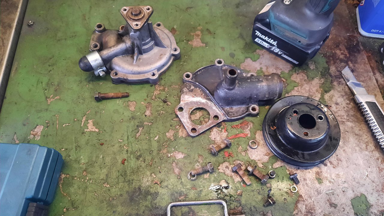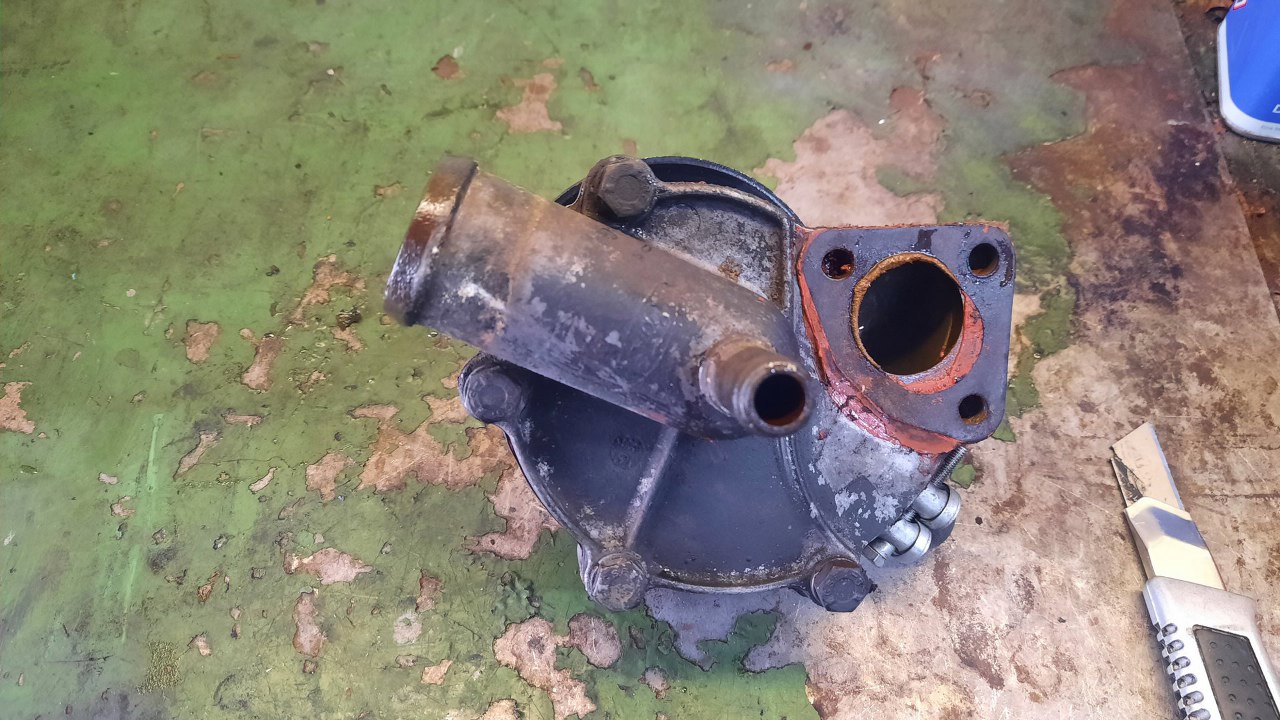 Odkręciłem ze starego silnika pompę wody. Ciut zapyziała...